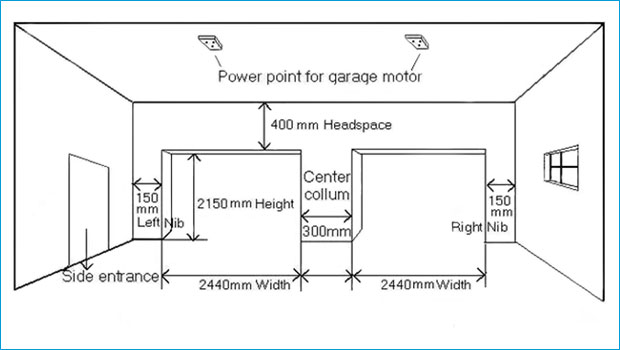 2440 mm (width) x 2150 mm (height), Head-room 400 mm, Nibs 150 mm